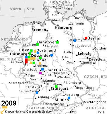 Die Landkarte gibt einen Überblick, an welchen Orten wir im Jahr 2009 arbeiteten.