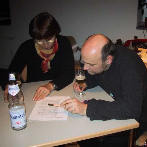 Bilder-Protokoll zum Zukunftswerkstatt-Jahrestreffen Nachtschicht Samstag 11.1.03 Was rastet, das rostet - Kantinenlesung und Rundumgeschichte Ruhrbier-Verkostung Max errechnet die Punktzahlen: Nachtschicht Samstag 11.1.03