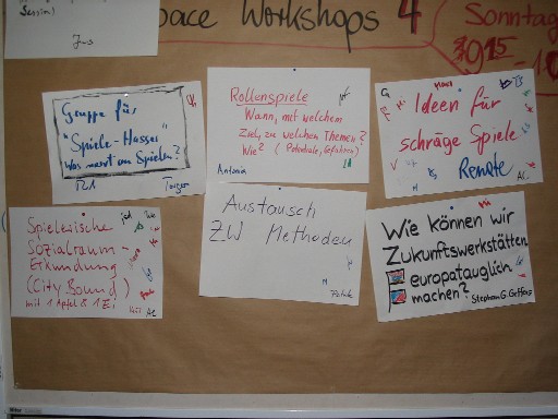 Nützliche Anregungen für gelingende Einsätze von Spielen in Zukunftswerkstätten geben die dabei zusammengetragenen und aufgezeichneten Ideen.